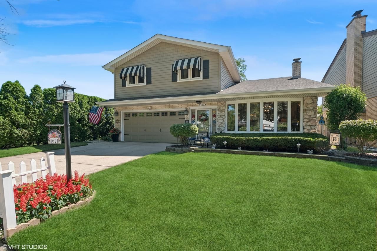 Welcome to your dream home in the coveted Roosevelt Elementary School district, adjacent to the beautiful Jaycee Park. This stunning 4-bedroom, 2.5-bath residence boasts double pane windows and a cozy first-floor family room with a fireplace. Sliding doors provide access to a spacious patio off the family room, ideal for outdoor dining and relaxation. All four bedrooms are conveniently located on the second level, each offering ample closet space. The spacious primary bedroom features its own private bathroom. On the main level, the elegant bar area is perfect for entertaining, while the walk-out basement provides additional space with access to the yard, offering endless possibilities. The attached 2-car garage ensures ample storage and convenience. The generous yard offers plenty of space for gardening, play, and leisure. Enjoy all that adjacent Jaycee Park has to offer, including a baseball diamond, basketball and tennis courts, and a playground, making it a haven for fun and recreation. Roof = 2012, Furnace = 2016, A/C = 2016, Siding facia Soffits and Gutters = 2017.